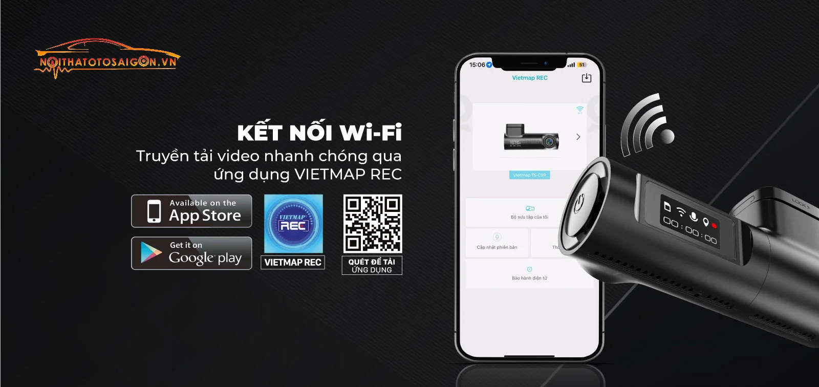 Camera hành trình Vietmap TS-C9P với công nghệ truyền dữ liệu qua WIFI không dây, giúp dễ dàng lưu trữ, xem lại và chia sẻ video trên mạng xã hội từ các thiết bị di động thông qua Vietmap REC . Đây là lựa chọn không thể bỏ qua để tạo ra những trải nghiệm lái xe an toàn và thú vị cho bạn.