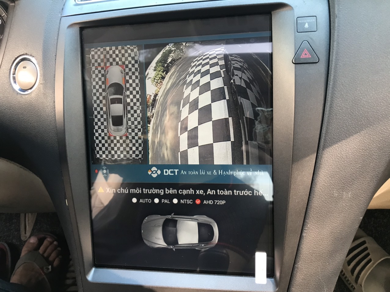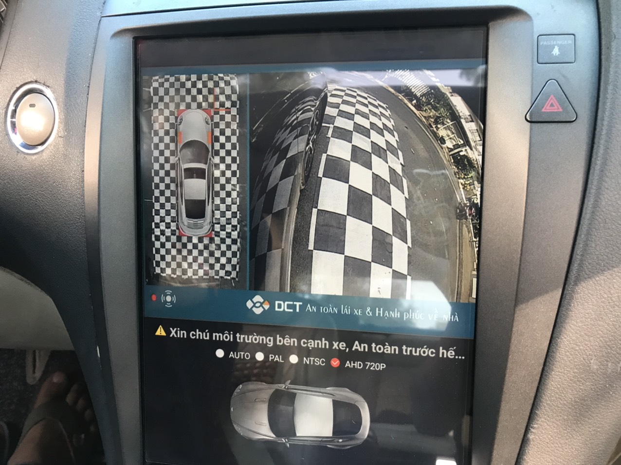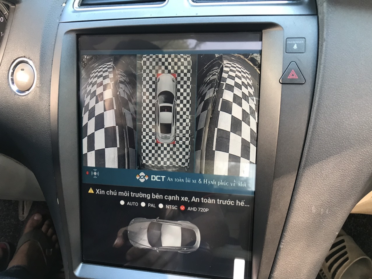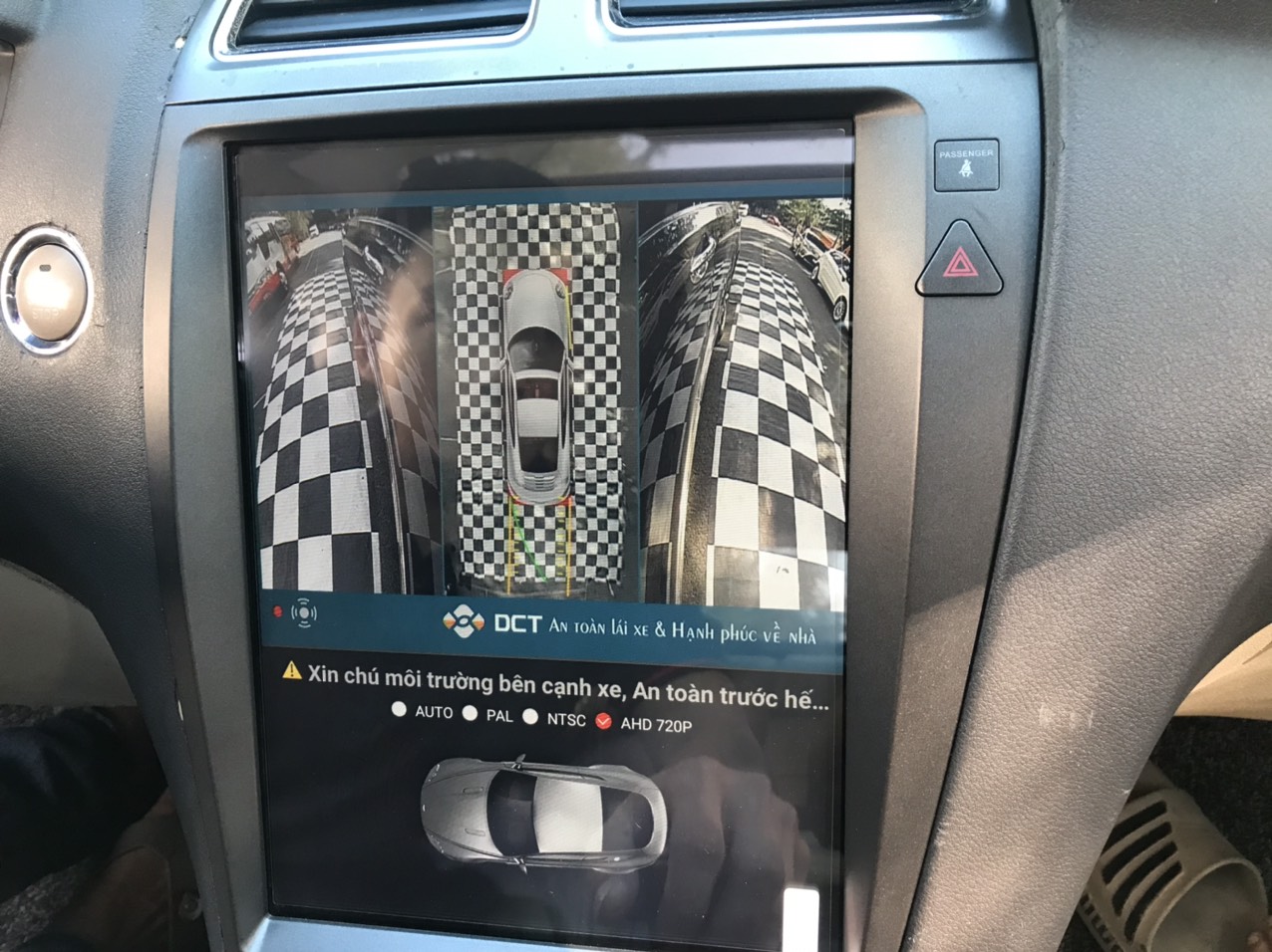 - Khi lên xe, bật máy xe thì hệ thống Camera 360 quét toàn cảnh trước khi vào trình duyệt DVD ( Điều này vô cùng quan trọng vì khi lên xe để chờ DVD chạy hết mới bật Camera lên thì không còn giá trị an toàn)