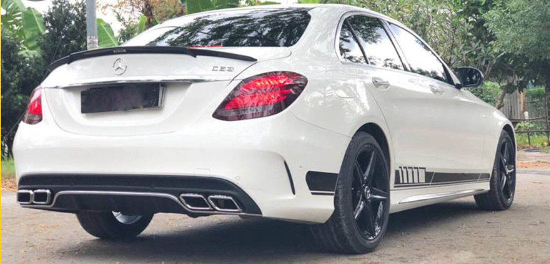 Chất liệu nhựa PP cao cấp Cản trước thể thao với các khe hút gió mạnh mẽ. Cản sau tích hợp tấm khuếch tán lớn và 2 ống xả đôi mạ crôm với cánh lướt gió màu đen bóng trên nắp cốp tạo điểm nhấn thu hút ở đuôi xe mặt thay đổi của các mẫu MERCEDES C-class. W205 ngày càng trở nên sang trọng và hầm hố hơn.