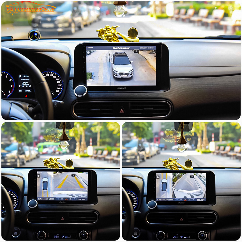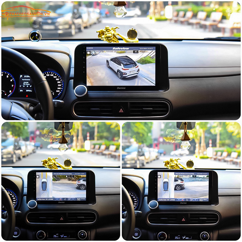 Với Camera 360 Safeview 3D LD980, người lái có thể sử dụng xi-nhan để chuyển góc nhìn camera bên trái hoặc phải, nhấn đúp nút cảnh báo hazard hoặc nhấn vào núm xoay để bật đồng thời góc nhìn toàn cảnh từ trên xuống và camera 2 bên sườn xe quan sát được cả 4 bánh trước sau. Camera hiển thị chính xác góc đánh lái và thân xe trực quan, cũng như hiển thị vạch căn lề ở các bánh xe, giúp việc di chuyển, đỗ xe sát lề đường trở nên rất dễ dàng, tránh xước vành và hỏng lốp xe.