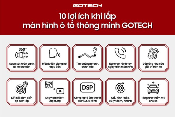 - Màn hình ô tô thông minh Gotech GT360 ra lệnh bằng giọng nói, tích hợp điều khiển qua phím cứng vô lăng. Rảnh tay thao tác và an toàn khi lái xe.